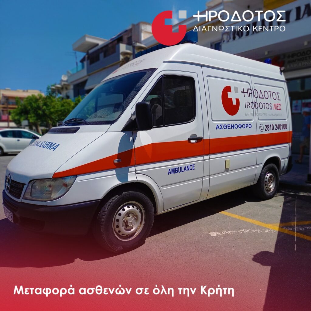 Στη διάθεση των ασθενών από όλη την Κρήτη για την μεταφορά τους, το ασθενοφόρο του Διαγνωστικού Κέντρου “Ηρόδοτος”
